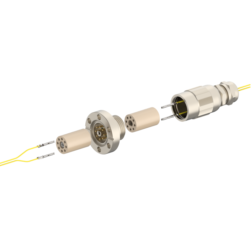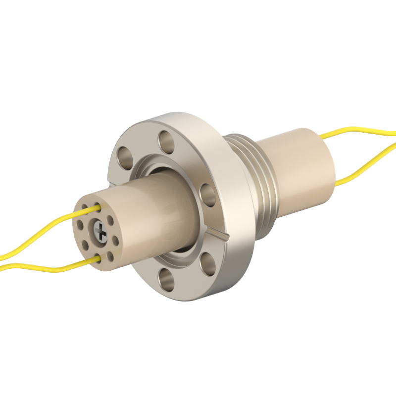 lPlugs are provided on both the vacuum and atmospheric sides, allowing easy plugging/unplugging for simple assembly and wiring. The plugs feature a keyed (polarized) design to prevent misinsertion and are made of low‑outgassing materials, making them suitable for high‑voltage (HV) environments.