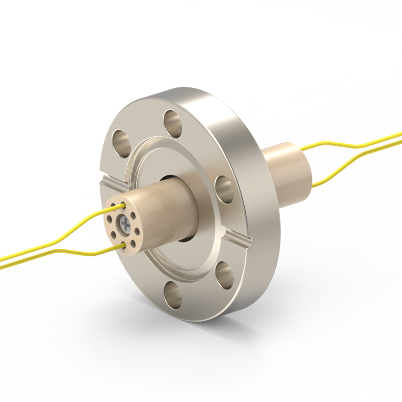 lPlugs are provided on both the vacuum and atmospheric sides, allowing easy plugging/unplugging for simple assembly and wiring. The plugs feature a keyed (polarized) design to prevent misinsertion and are made of low‑outgassing materials, making them suitable for high‑voltage (HV) environments.
