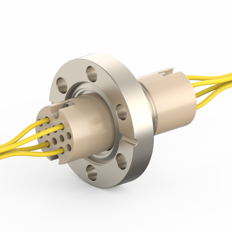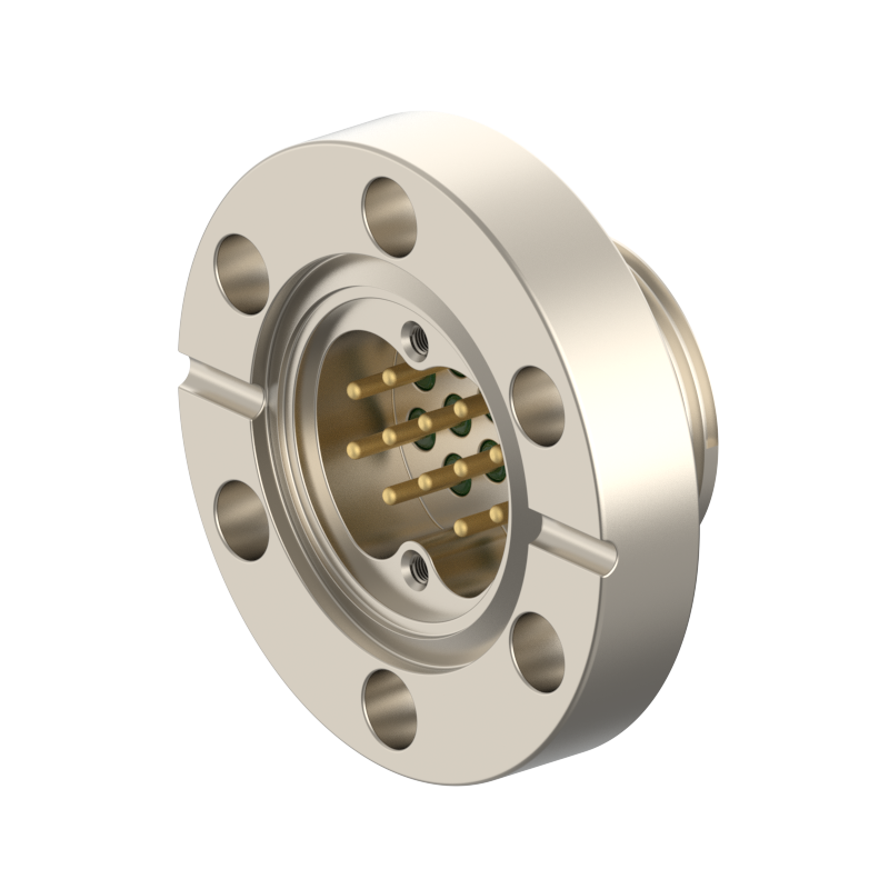 lPlugs are provided on both the vacuum and atmospheric sides, allowing easy plugging/unplugging for simple assembly and wiring. The plugs feature a keyed (polarized) design to prevent misinsertion and are made of low‑outgassing materials, making them suitable for high‑voltage (HV) environments.
