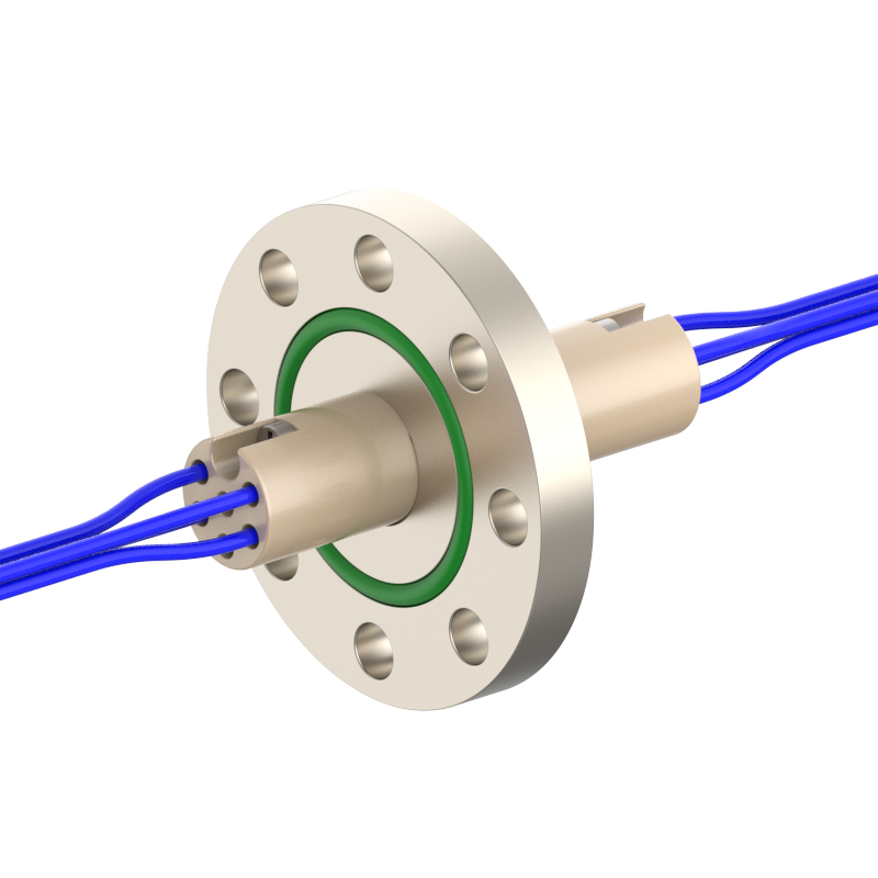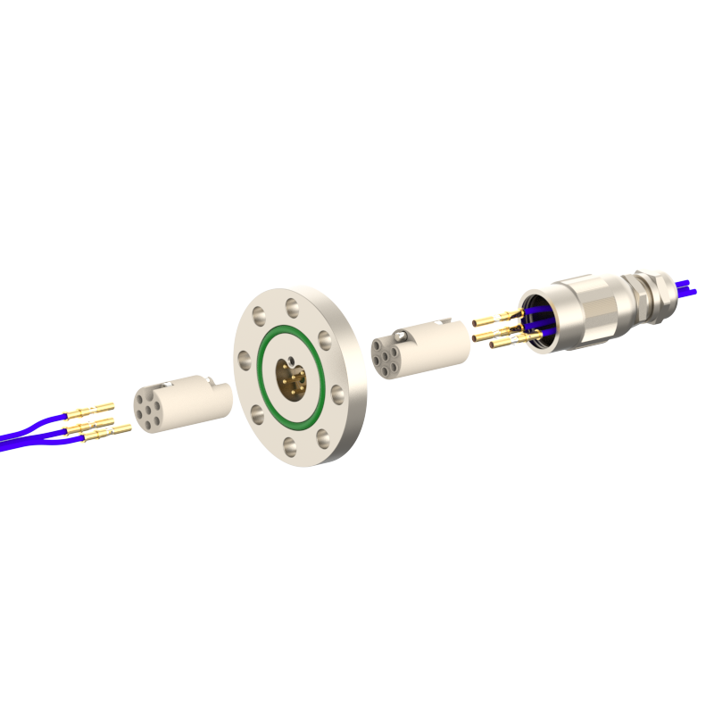 lPlugs are provided on both the vacuum and atmospheric sides, allowing easy plugging/unplugging for simple assembly and wiring. The plugs feature a keyed (polarized) design to prevent misinsertion and are made of low‑outgassing materials, making them suitable for high‑voltage (HV) environments.