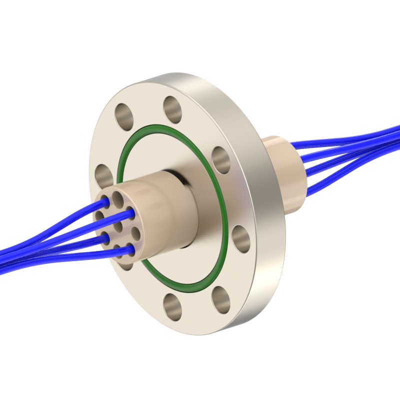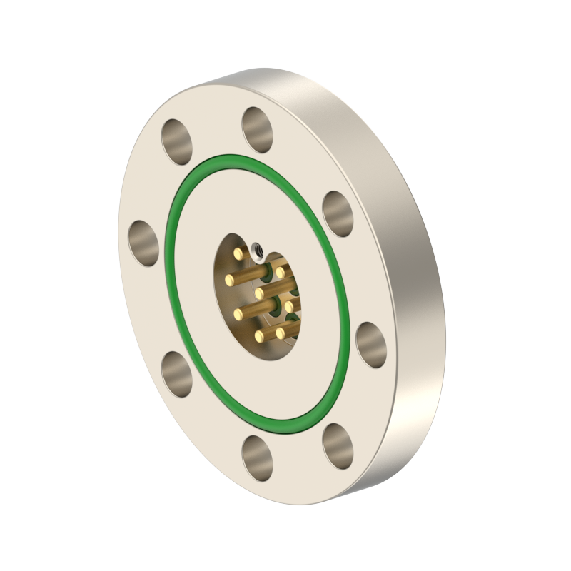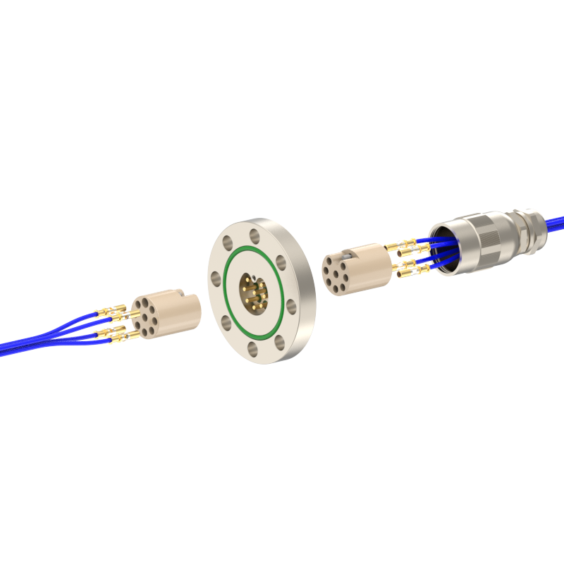 lPlugs are provided on both the vacuum and atmospheric sides, allowing easy plugging/unplugging for simple assembly and wiring. The plugs feature a keyed (polarized) design to prevent misinsertion and are made of low‑outgassing materials, making them suitable for high‑voltage (HV) environments.