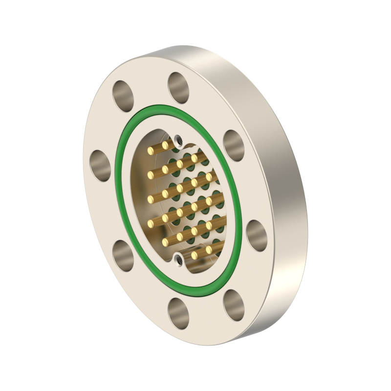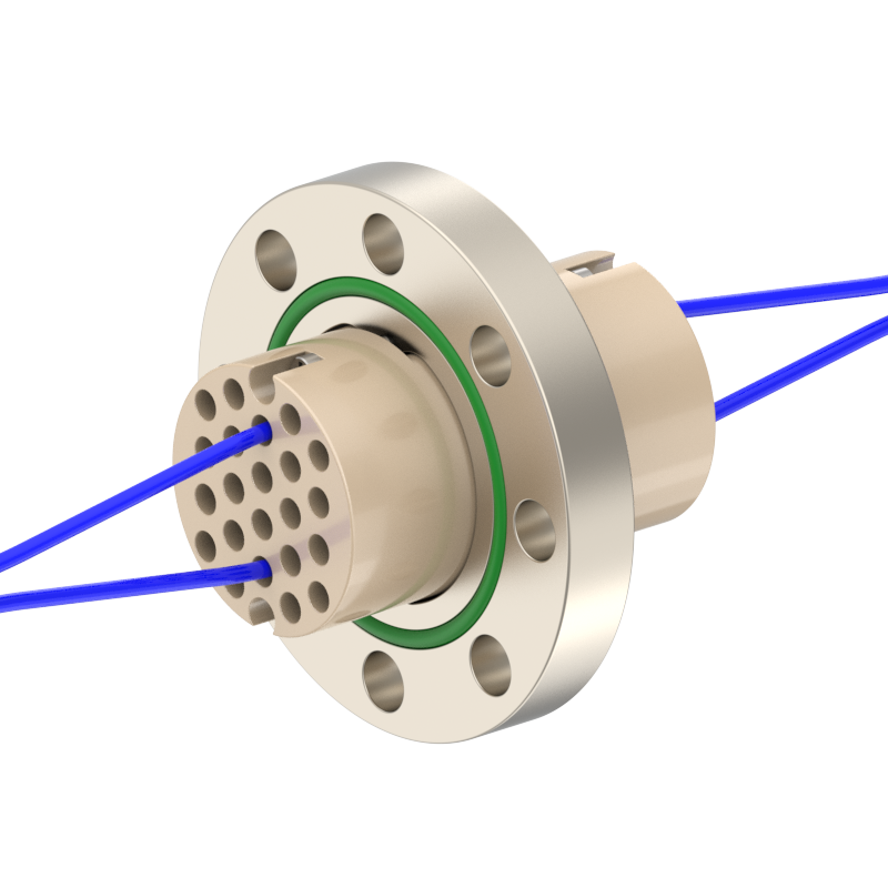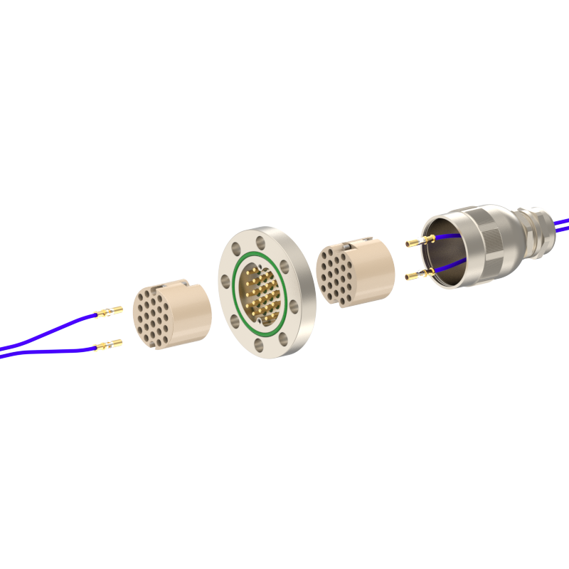 lPlugs are provided on both the vacuum and atmospheric sides, allowing easy plugging/unplugging for simple assembly and wiring. The plugs feature a keyed (polarized) design to prevent misinsertion and are made of low‑outgassing materials, making them suitable for high‑voltage (HV) environments.