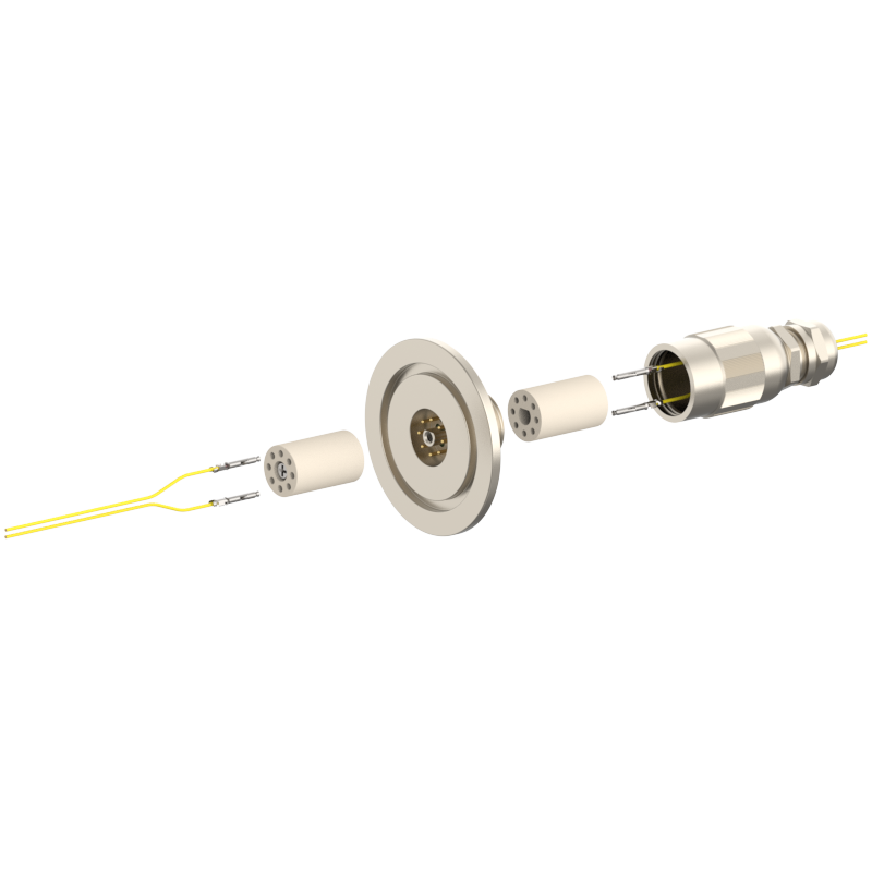 lPlugs are provided on both the vacuum and atmospheric sides, allowing easy plugging/unplugging for simple assembly and wiring. The plugs feature a keyed (polarized) design to prevent misinsertion and are made of low‑outgassing materials, making them suitable for high‑voltage (HV) environments.