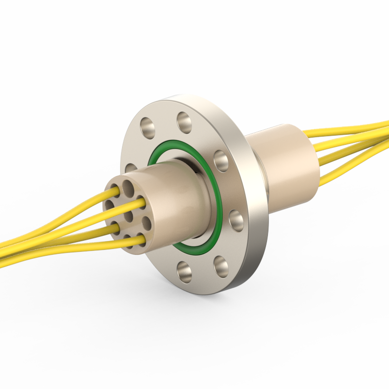 lPlugs are provided on both the vacuum and atmospheric sides, allowing easy plugging/unplugging for simple assembly and wiring. The plugs feature a keyed (polarized) design to prevent misinsertion and are made of low‑outgassing materials, making them suitable for high‑voltage (HV) environments.
