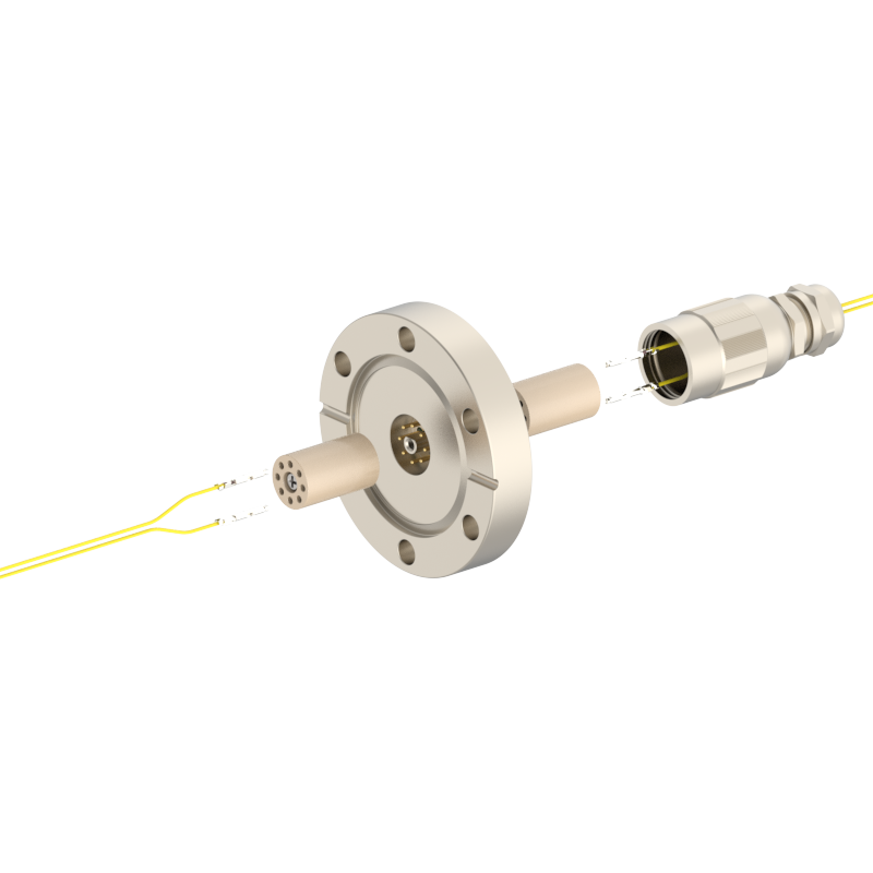 lPlugs are provided on both the vacuum and atmospheric sides, allowing easy plugging/unplugging for simple assembly and wiring. The plugs feature a keyed (polarized) design to prevent misinsertion and are made of low‑outgassing materials, making them suitable for high‑voltage (HV) environments.