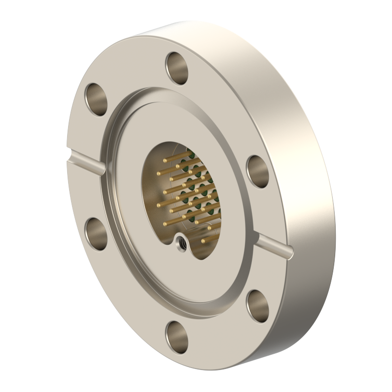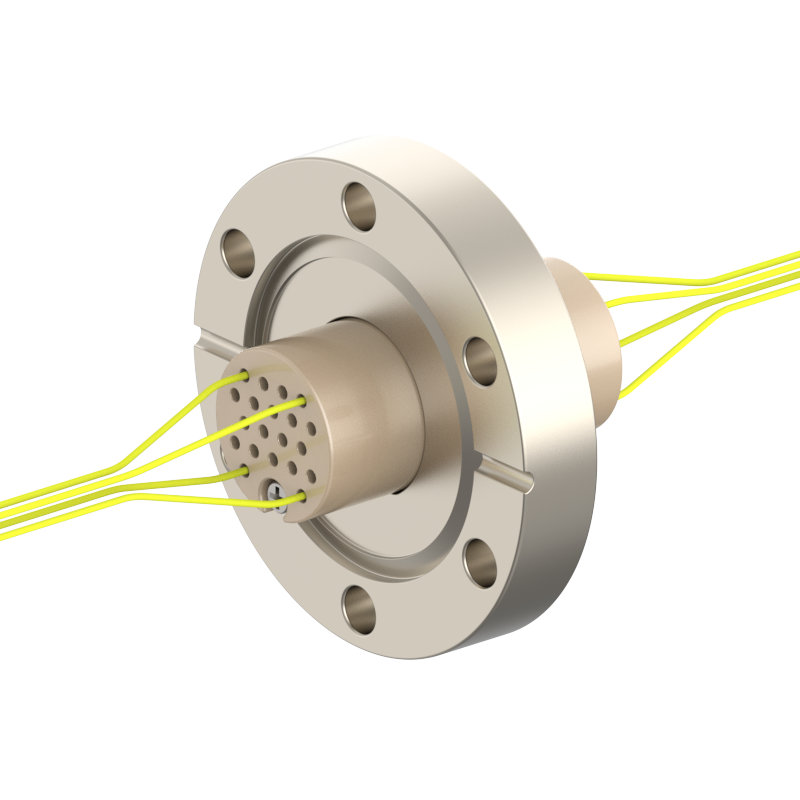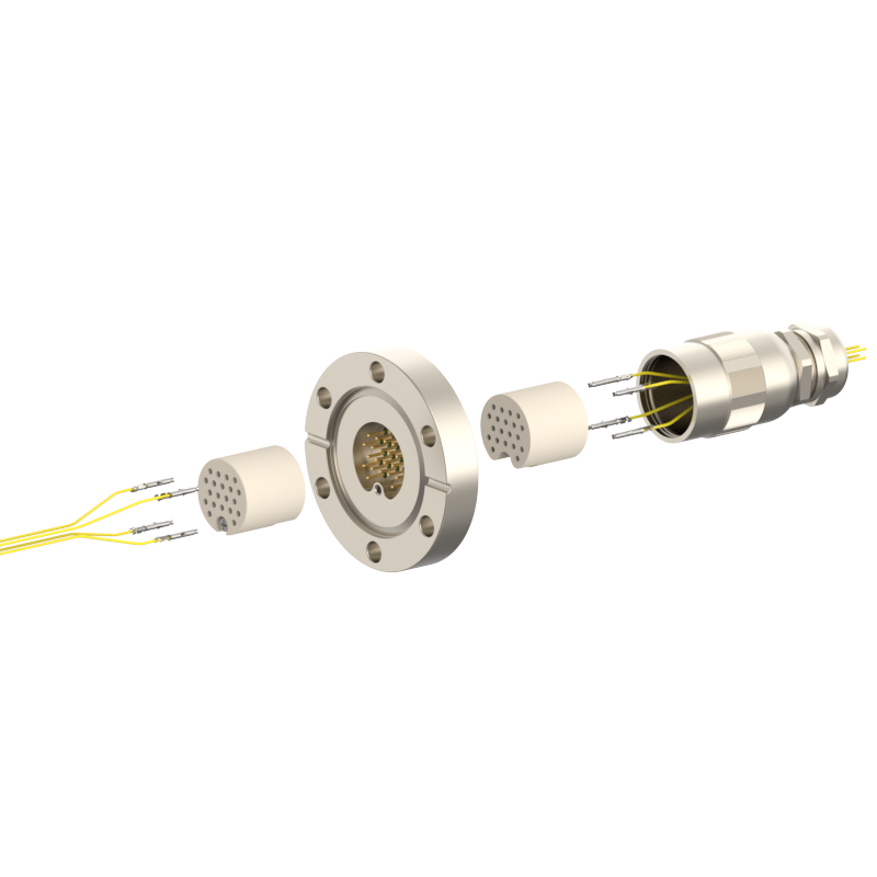 lPlugs are provided on both the vacuum and atmospheric sides, allowing easy plugging/unplugging for simple assembly and wiring. The plugs feature a keyed (polarized) design to prevent misinsertion and are made of low‑outgassing materials, making them suitable for high‑voltage (HV) environments.
