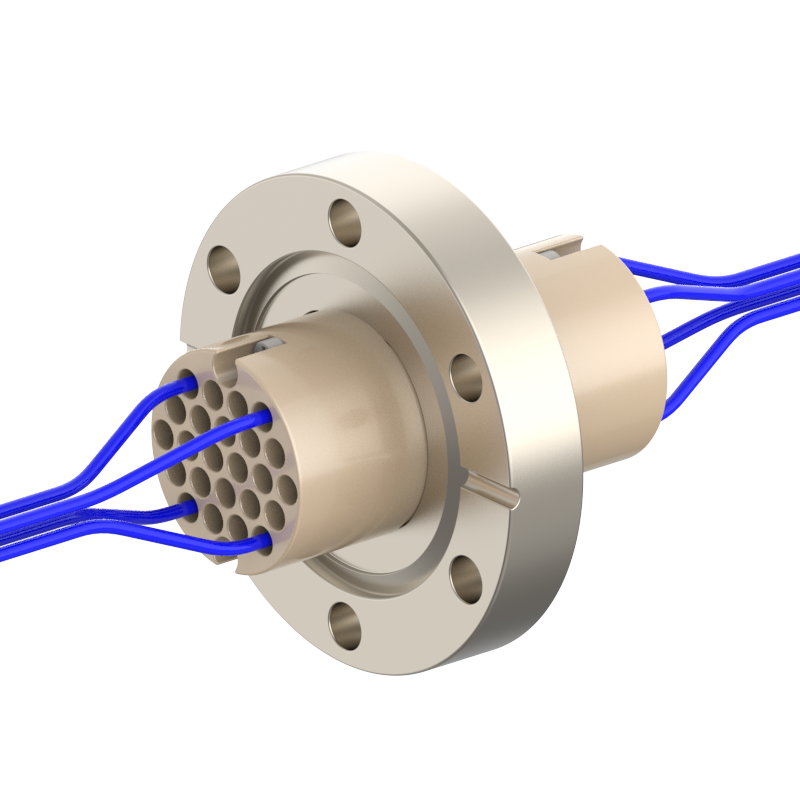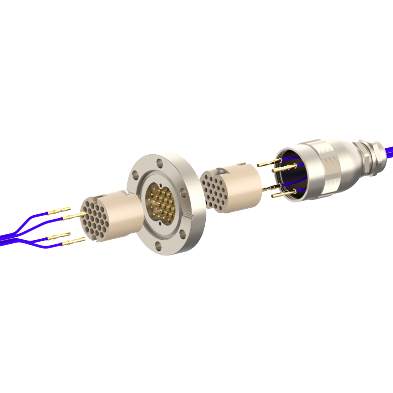 lPlugs are provided on both the vacuum and atmospheric sides, allowing easy plugging/unplugging for simple assembly and wiring. The plugs feature a keyed (polarized) design to prevent misinsertion and are made of low‑outgassing materials, making them suitable for high‑voltage (HV) environments.