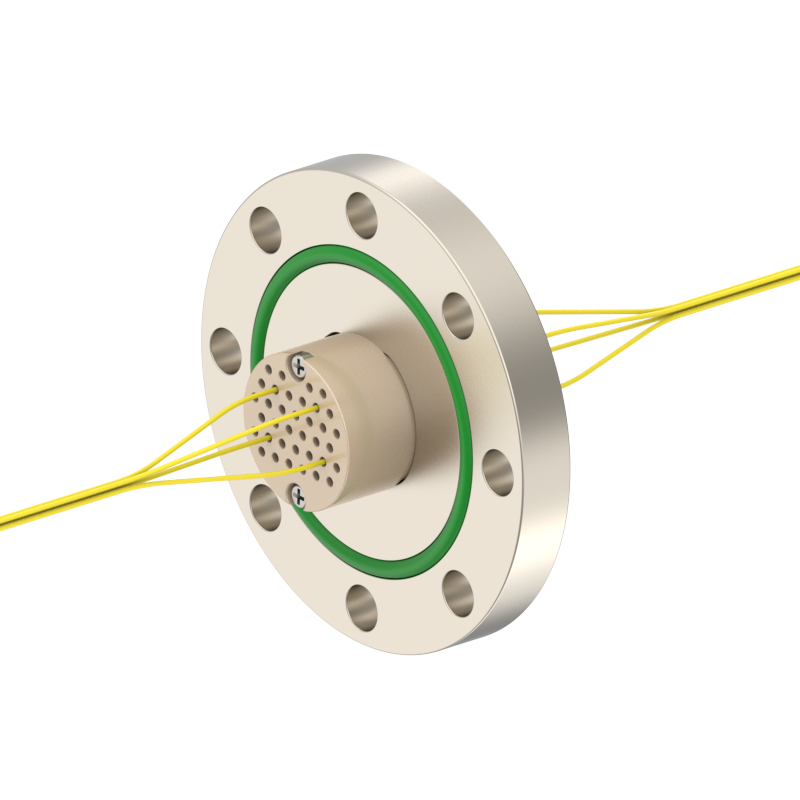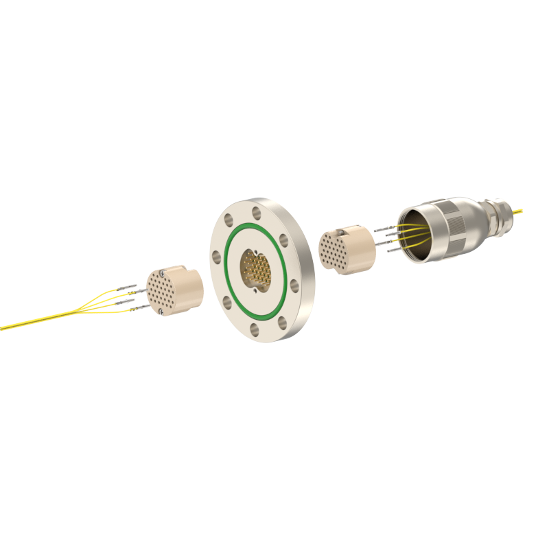 lPlugs are provided on both the vacuum and atmospheric sides, allowing easy plugging/unplugging for simple assembly and wiring. The plugs feature a keyed (polarized) design to prevent misinsertion and are made of low‑outgassing materials, making them suitable for high‑voltage (HV) environments.